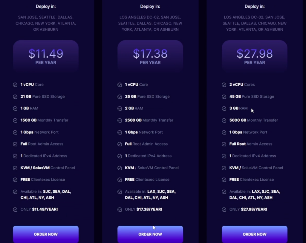 I chose the middle server since Racknerd can hook you up with a IPv6 address if you use one of the servers in their Los Angeles data center and those have to be a minimum of 2 gigs of memory, but honestly for 17 bucks a year, you can’t beat it.