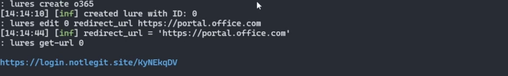 lures edit 0 redirect_url https://portal.office.com