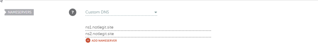 Now click on the domain button at the top right to return to the dashboard for that domain. Once there, drop down the menu for name servers and select Custom DNS, then add the two name servers we made in the previous screen.