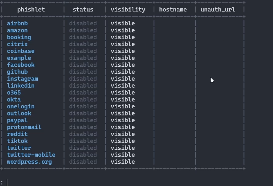 You should be seeing a list of phishlets now! You’re almost there, keep going buddy!
