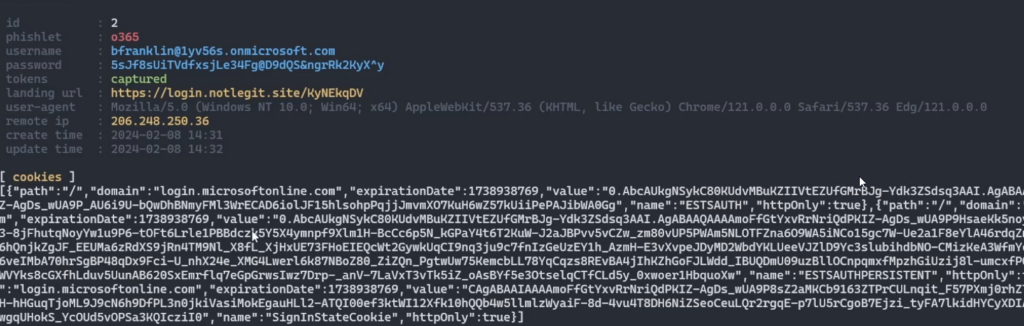 Now when someone signs into our very convincing Office look a like site, their session token will be captured and presented to us.